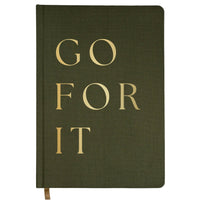Go For It Journal – Olive & Gold Fabric Notebook | Holiday Gift for Writers & Dreamers