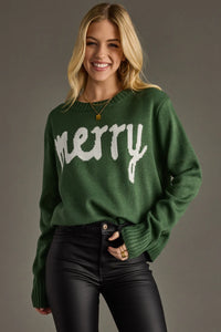 Merry Sweater – Hunter Green Knit Pullover | Christmas Holiday Outfit