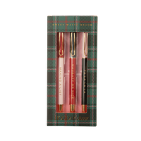 Add a little festive flair to your writing with the Holiday Cheer Metal Pen Gift Set. This charming set of three ballpoint pens is perfect for jotting down Christmas lists, baking notes, gift ideas, or holiday cards. Each pen features a fun seasonal phrase... Making a List, Naughty or Nice, and Fa La La La.