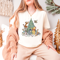 A cozy, nostalgic holiday tee featuring Winnie the Pooh and friends decorating the Christmas tree in the sweetest vintage-style illustration. Soft colors, gentle linework, and a calm winter palette make this the perfect shirt for anyone who loves quiet holiday moments, classic childhood memories, and soft, storybook-inspired style.