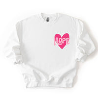 The Hearts for Hope Sweatshirt – White is bright, uplifting, and made to share a message that stands out. Featuring vibrant heart graphics with matching front and back prints, this cozy sweatshirt pairs everyday comfort with a bold symbol of optimism. Soft and easy to layer, it’s a feel-good piece designed to spread hope wherever you go.